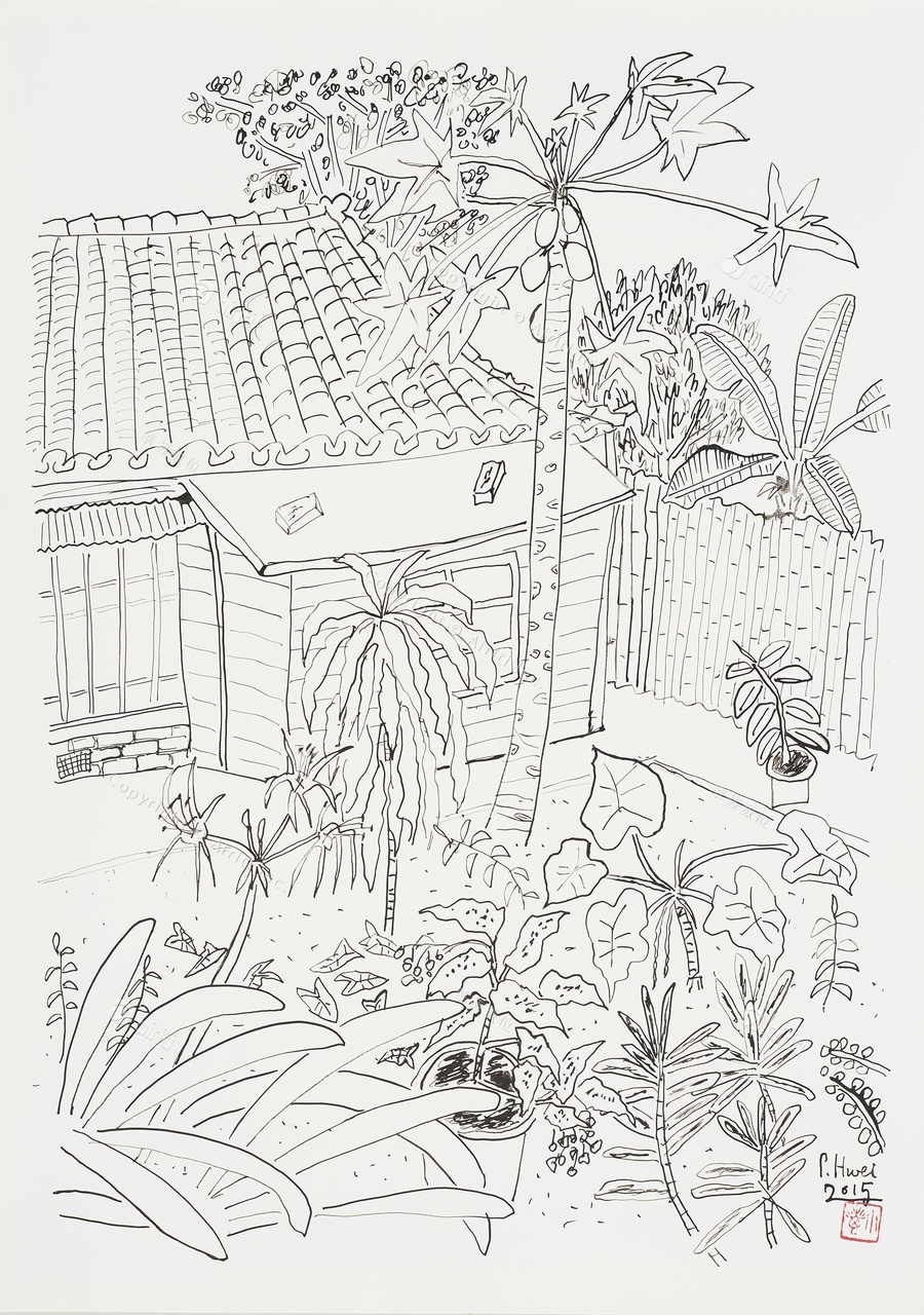 D043 Courtyard- Pen Drawing